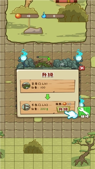 5、当大门或其他小妖身上出现绿色的升级标识时,建议对大门或小妖进行升级,以此延长抵挡敌人的时间。