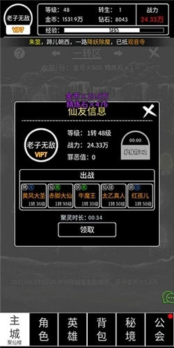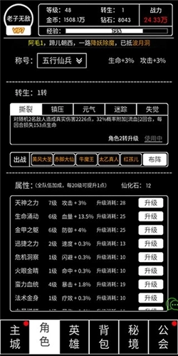5、这里优先推荐提升攻击、防御和血量属性,其他加成效果不太理想,剩下的化仙石最好留着,毕竟一转之后都不够用!此时我们的战力已经提升了一个档次,可以找个值得信赖的公会加入。