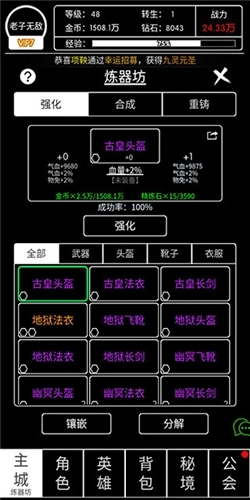 8、这款游戏的核心玩法主要包括挂机领取装备和经验,多余的装备可以通过炼器防分解功能来获取精炼石。