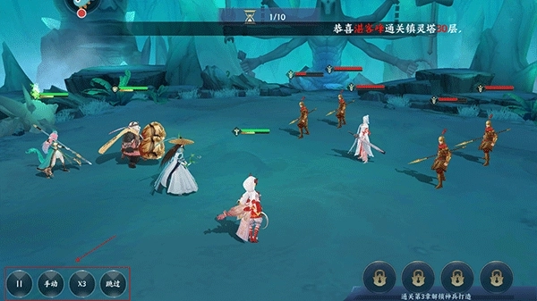 3、战斗开始后,你可以选择手动战斗,也可以直接跳过战斗过程