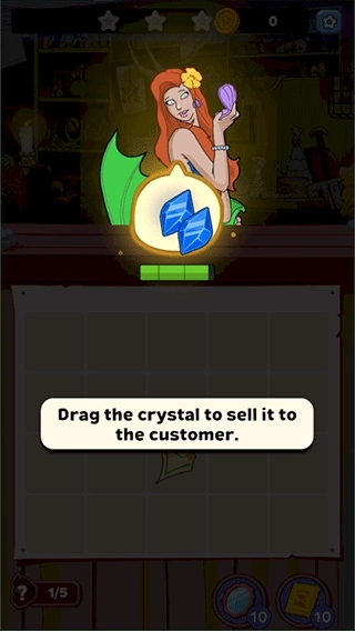 4、把合成好的二级水晶拖动卖给顾客,好好招呼你的客户,尽量多赚些钱;