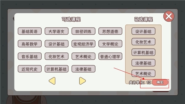 3、每门课程都将新增一个属性,同时减少一个属性。选课期间,长按该课程即可查看相关属性信息。(当然,你也可以在后续上课过程中查看,届时会直接展示出来,但那时已无法再重新选择课程了)