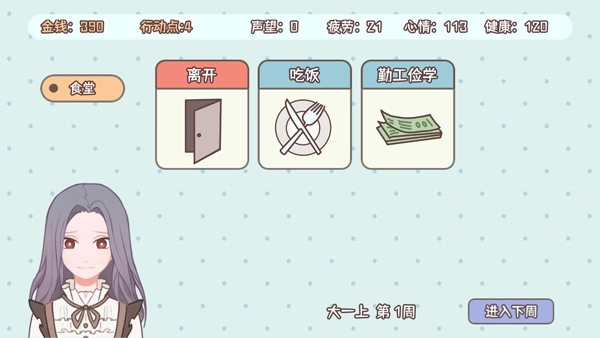 6、进入大学后,玩家便能正式开启属于自己的理想大学人生了。