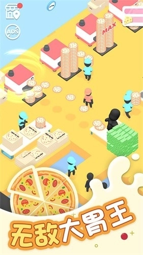 3、游戏中设置了各式各样的餐饮小店,除了披萨店外,你还能经营炸鸡店、馅饼店等。在店内举办大胃王比赛,不仅可以积攒人气,还能获取丰厚收益。