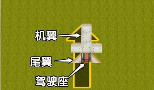 3、接着我们取出机翼,制作飞机的头部,冒险家们可以参照截图来制作: