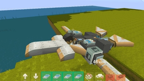 14、这样一个简易的飞机就制作完成啦!生成载具后可以试着操作一下,先坐上飞机,然后按下推进按键: