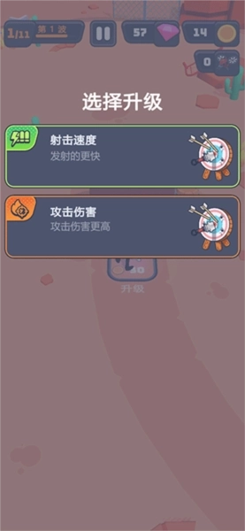2、击败敌人后可获取金币,操控角色移动到升级方块处,就能提升武器的伤害、射速等属性。