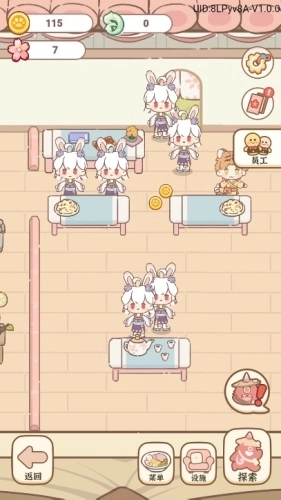 6、当等级达到特定要求后,右上角的“员工”功能便会解锁。点击该功能可雇佣员工,同时还能通过探索获取培训道具,用来对员工进行培训,从而提升她们的服务能力。