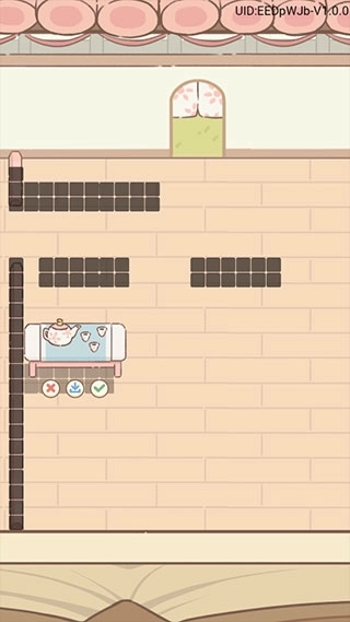 5、购买后的家具可拖动至合适位置摆放,点击对勾确认即可,黑色区域表示该位置已被占用。(长按场景内的设施便能调整其位置)