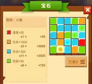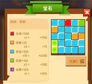 中级宝石的合成一共需要3块初级宝石,玩家们可以随意选择,高级宝石也同样需要3块中级宝石的合成,合成高级宝石玩家们就可以开始镶嵌了,选择合适的宝石镶嵌在图纸上就像俄罗斯方块一样堆积,在图纸上堆积好的宝石可以大幅度强化属性。