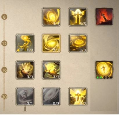 目前比较不推荐的一套,因为神谕需要站桩的读条施法,所以在很多难度或者机制比较多的副本中,限制非常大。(如果你觉得能力足够或者单体治疗不够的情况下可以试着换换,或许有奇效)