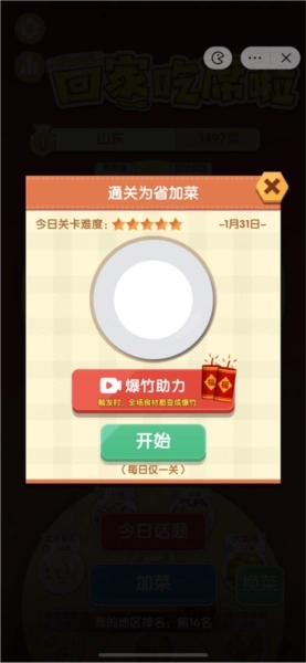 2、这里通过卡通形象为自己的省份加菜,我们点击“开始”按钮即可。