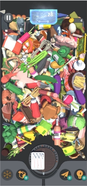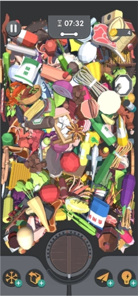 6、本关卡设有时间限制,玩家需在规定时长内消除所有物品;若觉得挑战难度较高,还可借助道具辅助通关。