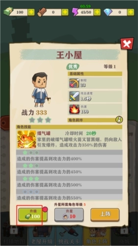 8、升级完老屋后,多增加了角色站位,我们点击角色升级,升级王小屋角色,提高他的伤害;