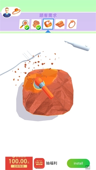 2、直观的操作体验:玩家仅需通过简单的点击与滑动操作,就能完成从原石到珠宝的整个制作流程,让每一位玩家都能轻松变身钻石大师。