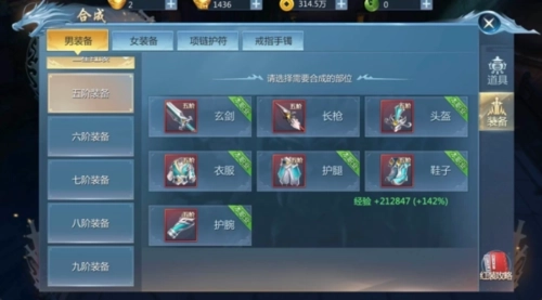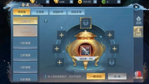 2.同阶装备只能合成同阶装备,比如5阶就只能是5阶了。合成使用的装备必须是橙装,因为红装下面就是橙装嘛,当然紫、绿这种装备是无法合成的。
