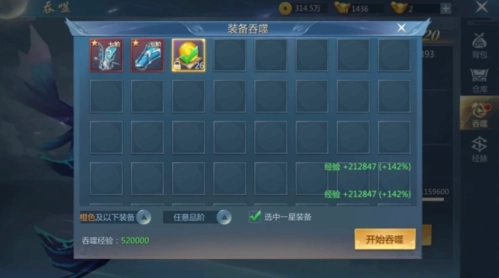 1.1星装备无法合成,因此在吞噬列表中,不会把1星以上的装备弄进来。