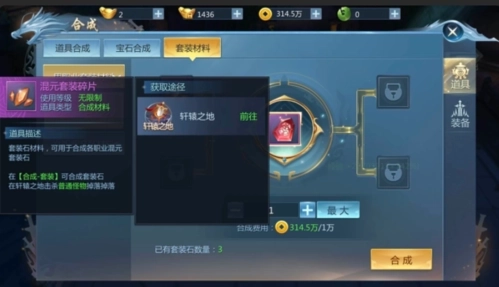 2.混元套装用的材料是混元碎片,可以在副本轩辕之地获得,奔雷状态用的材料也可以在轩辕之地打,不过在个人BOSS和世界BOSS中也有一定概率可以获得。