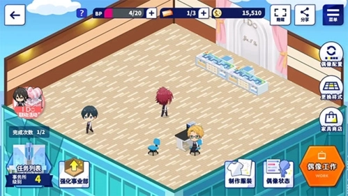 要是大家想给自家喜欢的小偶像做衣服、布置房间,就得常打开事务所啦。等事务所升到2级后,各项功能才会解锁开放哦。