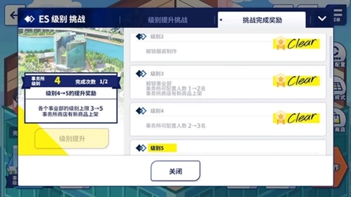 在主页面点击左下角的任务列表,即可打开事务所升级任务界面。每完成一项任务,事务所等级就会提升一级,且每个等级都对应着不同的奖励内容。