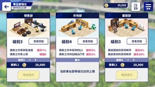 点开强化事业部,这里能帮助你更轻松完成偶像工作。