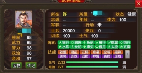 每个武将都具备统率、武力、智力、政治力与亲和力这五项属性,武将的初始属性高低直接影响其后续可培养的上限。由于游戏里的各类中高级属性获取难度较大,因此我们没必要把资源耗费在那些初始能力仅为个位数的武将身上。