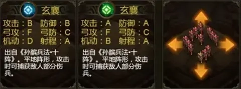 此外还有防守时能修复阵型的乱射圆阵,而攻心、连攻、疾驰玄襄阵这些也都挺不错的。
