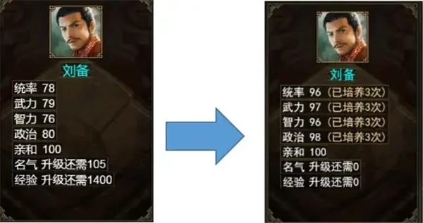 武将的培养主要包含属性培养、技能培养和阵型培养这几个方面。技能培养与阵型培养的内容,大家可以参考我后续会提到的技能阵型搭配部分,接下来先为大家介绍属性培养。