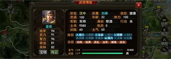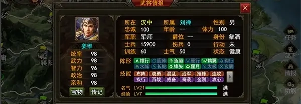偃月阵:自带骁勇技能的姜维,在获得“叱咤”技能后,足以成为蜀汉后期的单挑核心。