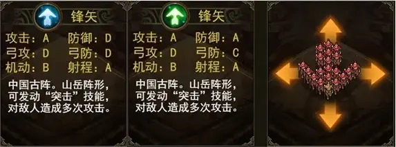 锋矢阵具备“摧锋”与“连攻”的特性,姜维正在研习这套阵法,选用连攻的玩法也是相当不错的。考虑到攻击力尚有提升的余地,建议在游戏中期再采用这套阵形的玩法。