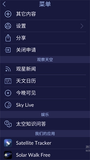 1、打开星空漫步2,首次使用需要获取当前位置;