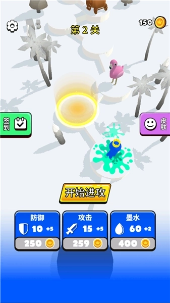 选择你的军队皮肤,颜色和旗帜和升级你的技能(攻击,防御)或军队规模(墨水)。