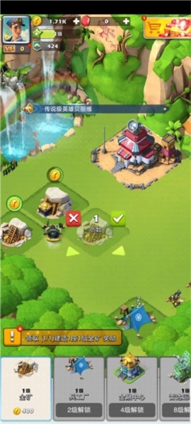 7、点击建造,建造多个金矿,建筑也可以通过拖拽合并升级;