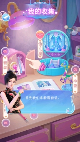 2、可以看到套装、神兽、仙子小屋等物品收集进度;