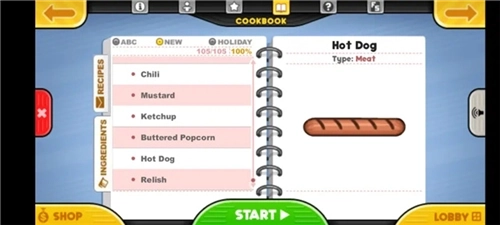 热狗店里总共有5种标准香肠,每一种都有不同时长的烤制时间,玩家可以在升级商店里购买警报器与加速器来提高烤制的效率。