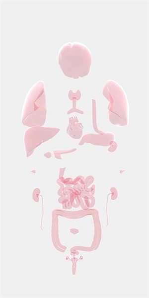 4、我们用手指在屏幕两侧拖动时,人体器官会分开显示,这更便于我们查找对应的器官;点击屏幕中央,器官则会重新聚拢。