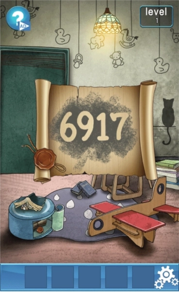 4、检查大门右侧的门锁,依据刚才纸张上显示的数字,按照图示输入密码6917就能通关。