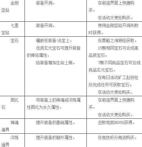 通过点击“锻造”按钮进入“宝石镶嵌”界面,即可对装备进行开洞操作与宝石镶嵌。宝石的品质越好,为装备附加的属性数值就越高。