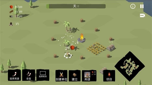3、四处探险寻找资源宝藏,建立坚实基石,拓展村庄规模。