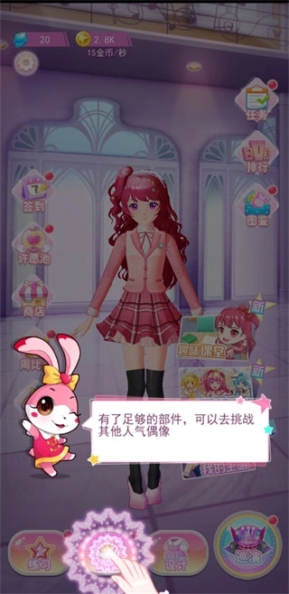 游戏里有很多可爱的少女,玩家既能用心装扮她们,也能让她们学习技能提升魅力,朝着偶像歌手的目标努力。不过成为偶像并非易事,过程中得进行大量练习,掌握更厉害的技能;玩家还能聘请专业设计大师定制各类服饰,助力她们登台表演积累更高人气。
