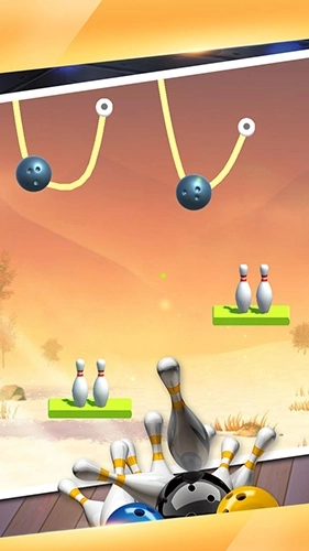 1、基础割绳玩法:点击屏幕切断绳索,借助重力使保龄球下落击倒目标,达成指定任务就能通关。