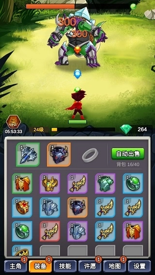 2、选择放置玩法,核心在于刷取装备,装备品质不断提升后,游戏体验会愈发畅快,让人沉浸在“刷刷刷”的乐趣中根本停不下来。