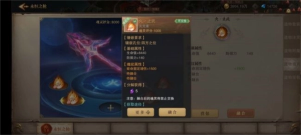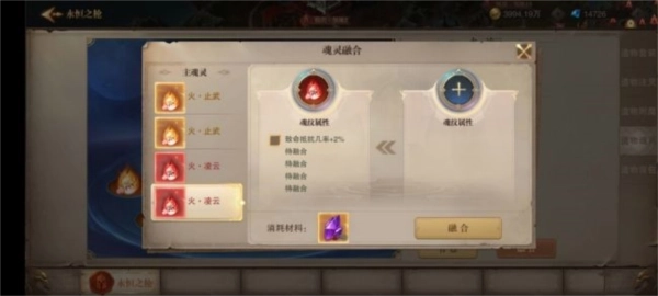 然后从右侧空着的加号位置选择想要合成的魂灵,完成融合后,被选中的魂灵就会从该位置消失。