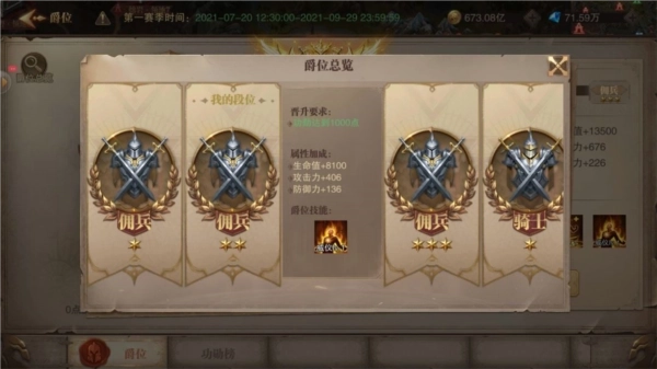 在远征玩法里,爵位的提升需要依靠积累功勋值。以初始的“佣兵”爵位为例,当功勋值达到0时,玩家即可拥有“佣兵”身份;而当功勋值累积到1000时,便能晋升为“佣兵一星”,此时才会正式开始获得对应的属性加成,具体的爵位升级规则可参考下方图示。 那么,功勋值该如何获取呢?主要途径有两个:一是参与远征攻城,二是通过远征丰碑领取。不过需要注意的是,从远征丰碑处能获取的功勋数量十分有限,因此,最核心、最主要的功勋获取方式,还是参与远征攻城活动。
