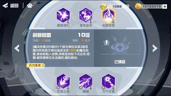 1、每次释放技能后,所有技能的冷却时间减少1回合;专属效果额外增加对斜十字距离为2的敌方单位的作用,同时自身法术攻击提升10%