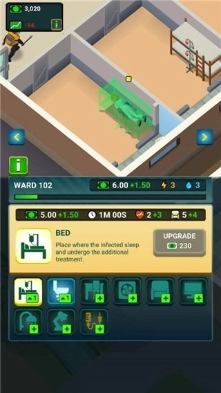 感染者和医生都觉得您在诊所的发展进程中发挥着作用。员工的安全以及治疗能否有效,取决于杂物间、实验室、手术室和护理人员室的品质。记得升级病房、休闲区还有心理学家的办公室。同时要密切留意水和电的储备情况。