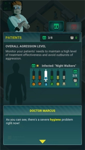 僵尸是最难应对、最具危险性的患者群体。一旦医护人员未能给予他们恰当的照料,这些患者就可能情绪失控,对医务人员发起攻击甚至撕咬。如此一来,整个僵尸医院都将面临被感染的巨大风险。正因如此,密切留意患者的情绪变化、为他们安排合适的娱乐活动、提升病房的舒适程度就显得尤为关键。
