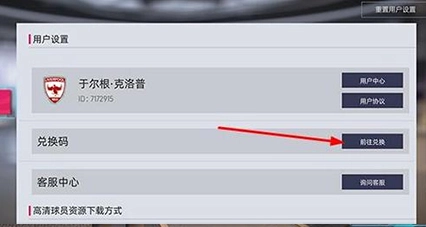 第三步:在右侧菜单里选择“用户设置”,就能找到兑换码的输入位置了。
