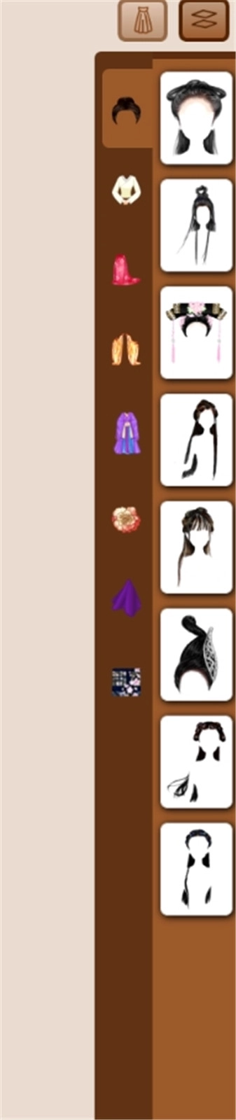 5、右侧的这些就是能够用来装饰打扮的服装、发型与背景。