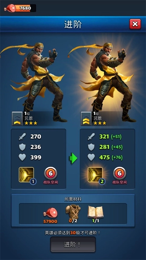 这里必须强调的是,在游戏初期阶段,初始品质越高的英雄,能力自然越强,但他们升级所需的资源,相比原生3星乃至2星英雄,会高出至少一个数量级——至少在主城等级达到11级之前,想要培养5星英雄是相当困难的。